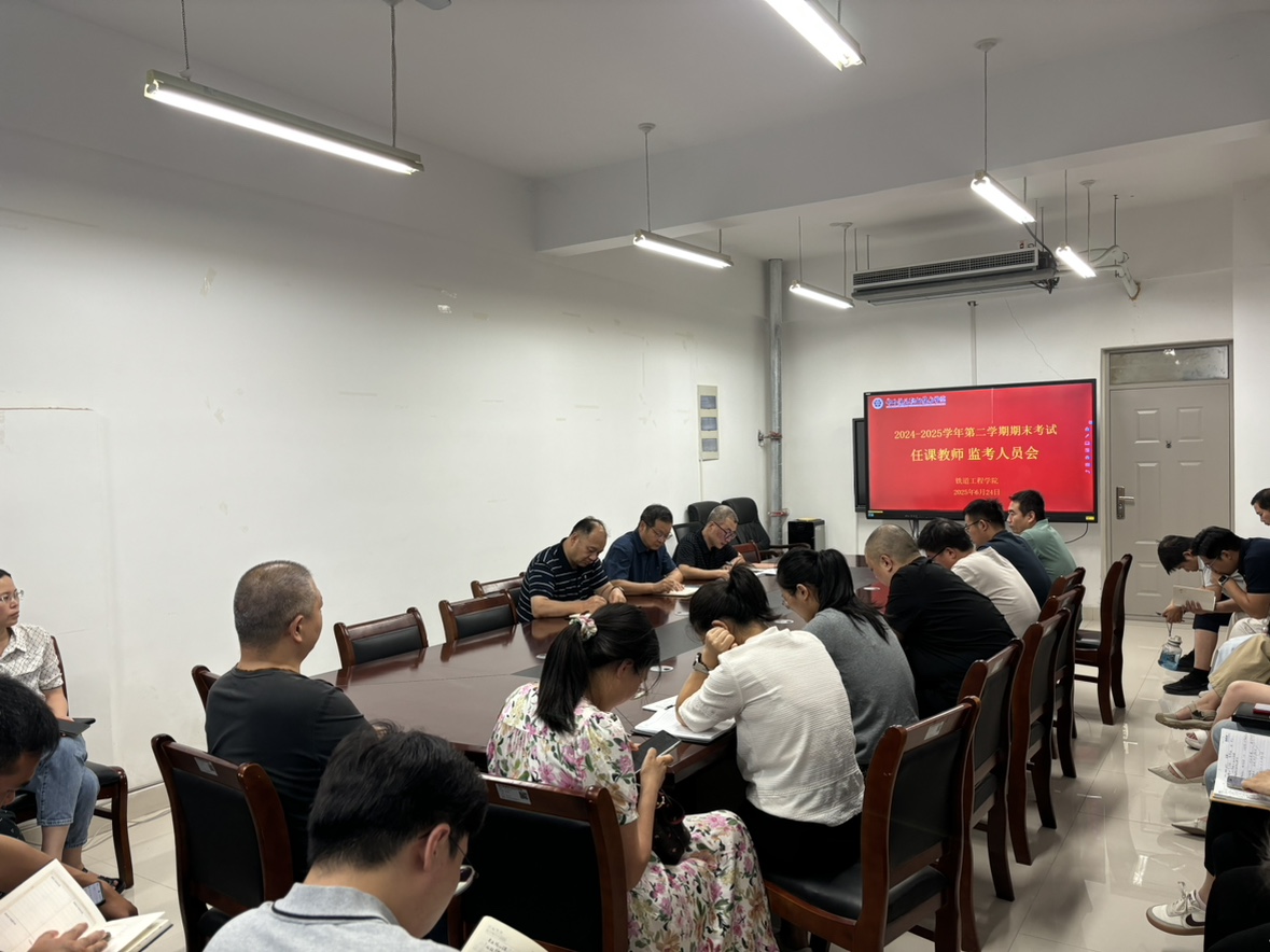 6月24 日下午,铁道工程学院在6B410组织召开2024-2025学年第二学期期末考试考务会及监考人员培训会,学院领导班子、各教研室主任、全体教师参加会议,会议由学院教学副院长主持。