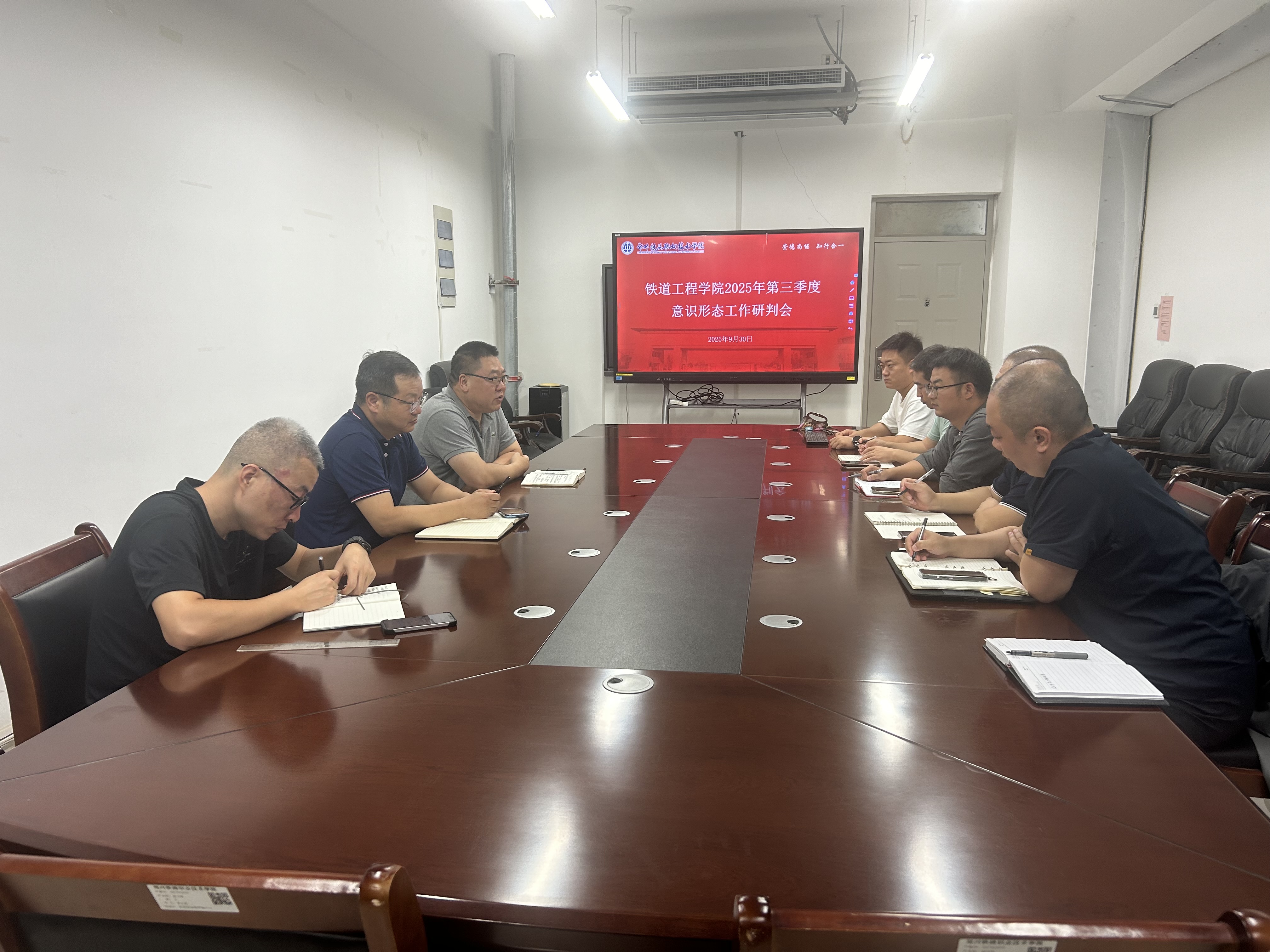 为深入贯彻落实学校关于意识形态工作的决策部署,切实筑牢学院思想阵地安全防线,保障教育教学工作的正确政治方向,铁道工程学院于9月29日在学院会议室召开意识形态工作专题研判会。学院领导班子成员、各教研室主任参加会议,会议由学院党总支书记刘燕明主持。