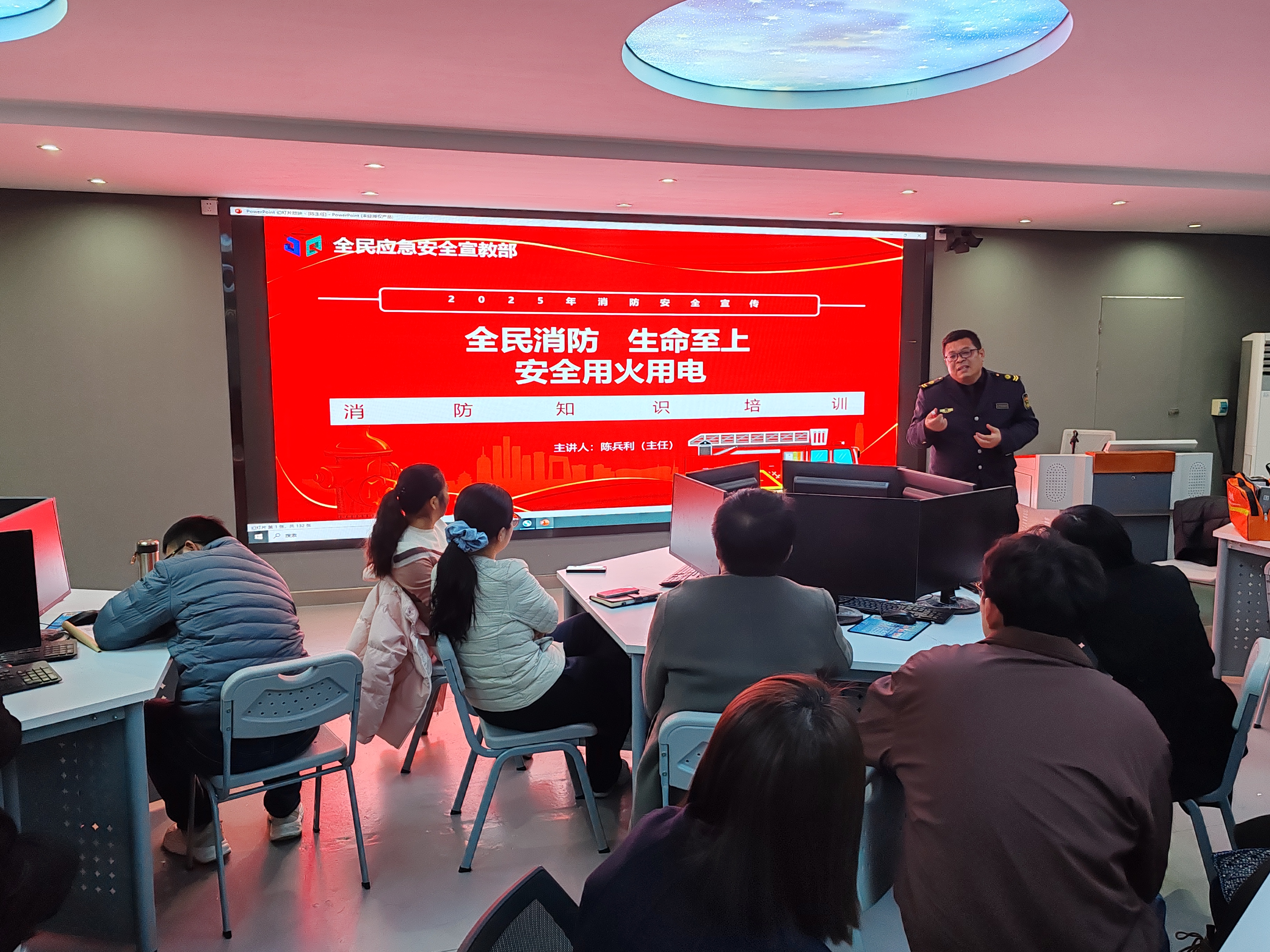 为进一步提升教师队伍的消防安全意识和应急处置能力,筑牢校园安全防护网,11 月 18 日,铁道工程学院在会议室组织开展消防安全专题培训。本次培训由全民应急安全宣教部教员陈兵利主讲,学院 40 名教师全员参与。