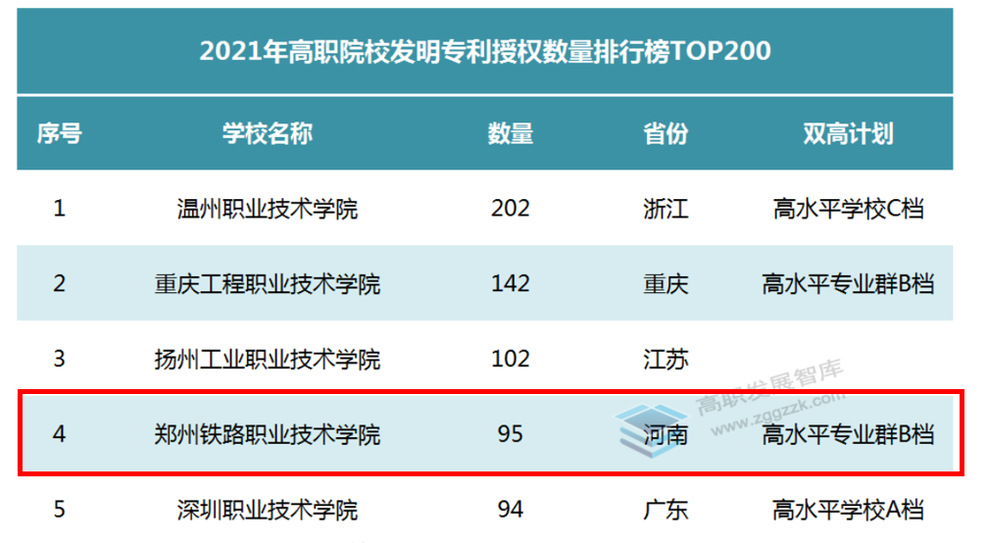 近日,高职发展智库对2021年全国高职院校发明专利授权数量进行了统计分析。2021年,全国高职院校共获得发明专利授权数5562件,较2020年增长43.57%。其中,164所“双高”院校共获发明专利授权3127件,占比56.2%。我校发明专利授权数为95件,位居全国高职院校第四名。