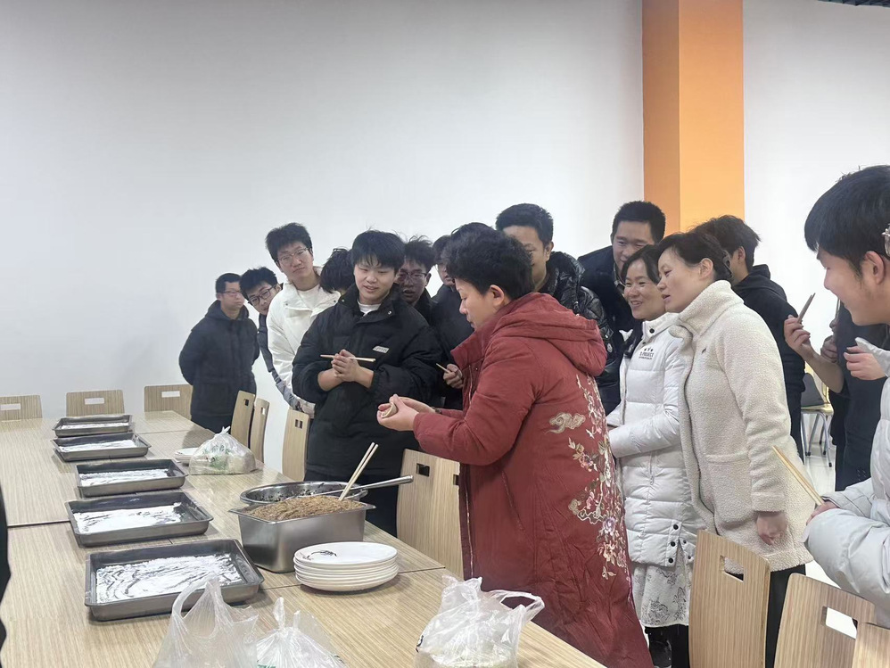 活动在育人导师田新景“如何包出形态优美的饺子”演示下展开,师生围坐在桌旁,一边包饺子,一边交流着家乡的风俗习惯和包饺子的技巧,欢声笑语回荡在餐厅的每个角落。充分体现了学生社区大家庭的温暖与和谐。