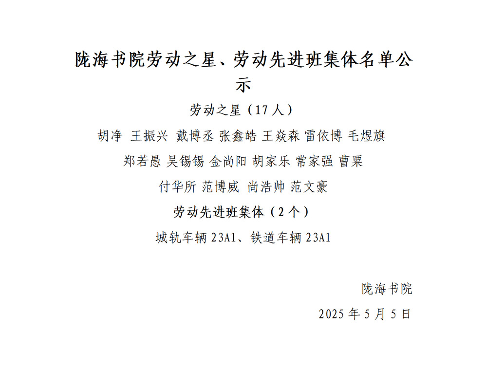 陇海书院劳动之星、劳动先进班集体名单公示