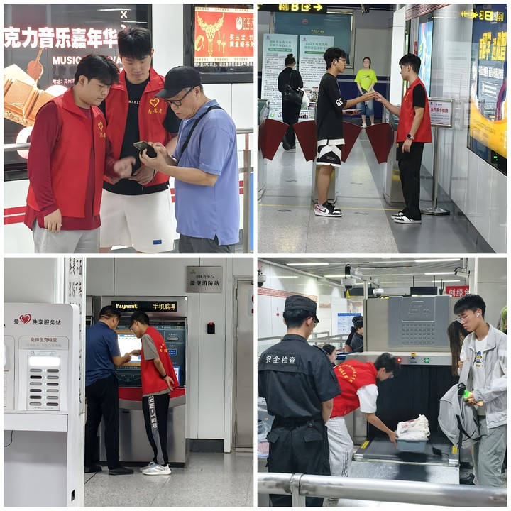 活动当天,志愿者们身着红色马甲,在地铁站工作人员的指导下迅速投入工作。大家在进出站口、售票机、安检处等区域为乘客提供路线指引、购票咨询等,为出行遇到困难的乘客提供帮助。