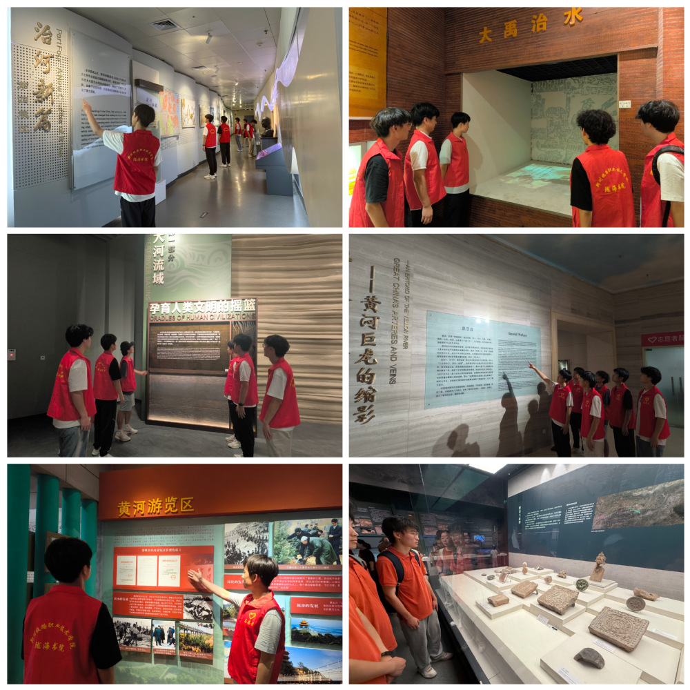 值得关注的是,团队注重挖掘黄河文化内涵,推动生态保护与文化传承深度融合。实践期间,志愿者先后走进郑州黄河文化公园、黄河博物馆、大河村遗址及洛阳隋唐大运河文化博物馆,开启沉浸式文化学习之旅。在黄河博物馆,通过“远古黄河”“文明之光”“治河丰碑”等展区的实物陈列与多媒体演示,系统了解黄河地理变迁及中华民族治河历史成就;在大河村遗址,6000 余年的彩陶文化与聚落遗址,让团队成员们直观感受黄河流域早期文明的璀璨;在洛阳隋唐大运河文化博物馆,通过复原漕运船只、数字化运河地图,深刻认识大运河作为“古代经济动脉”的历史作用及其与黄河文化的紧密联系,实现“生态守护+文化浸润”的双向赋能。