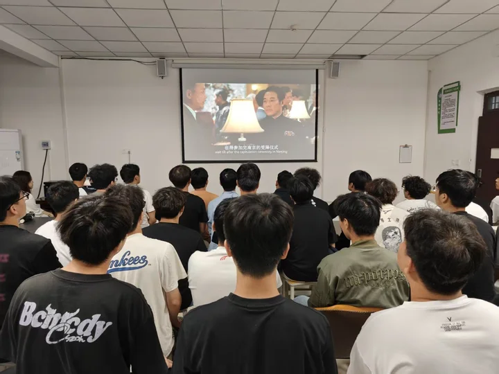 为庆祝新中国成立76周年,重温建国峥嵘岁月,9月26、27日,陇海书院“一站式”学生社区于陇海书院党总支红色放映厅举办第十九期“红色光影映初心”观影活动,23、24级学生踊跃参与。