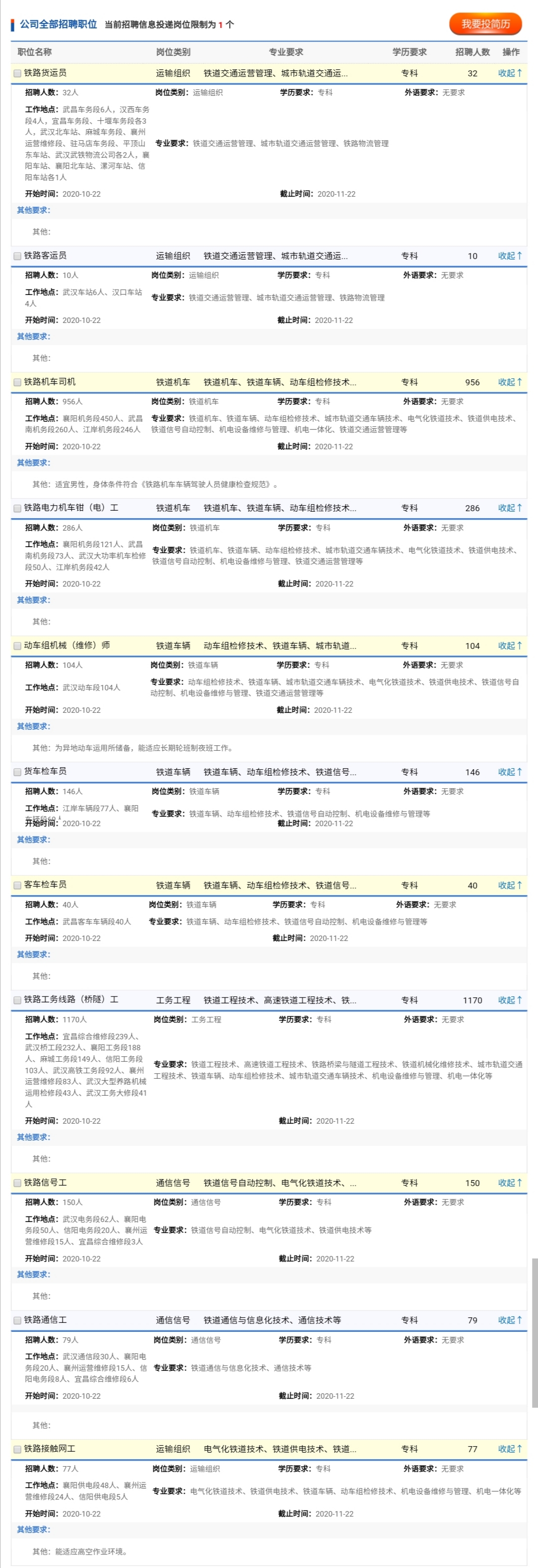 :武汉局集团公司2021年度招聘高校毕业生岗位信息表