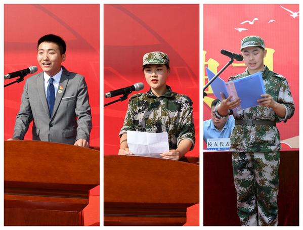 校长孔凡士发表讲话。他代表全校师生员工对全体新生表示欢迎,向圆满完成此次军训任务的同学和全体教官表示祝贺,向三名校友的捐赠表示感谢,并对全体新生寄语殷切希望。一是与祖国同心,以奋斗之歌厚植家国情怀。要时刻谨记习近平总书记“要做爱祖国、爱人民、爱共产党、爱社会主义的大学生”的重托,不忘社会责任,葆有家国情怀,砥砺创新创业精神,化爱国之情为报国之行,融爱校之心于刻苦学习,让个人价值在民族复兴伟业中熠熠闪光。二是与时代同向,以奋斗之姿练就精湛技艺。要牢牢把握时代发展的机遇期,通过专业知识学习和实践能力培养,练就过硬的技术技能本领,不负时代,用奋斗之姿让梦想与时代相向而行。三是与母校同行,以奋斗之光照亮美好明天。要敢于尝试新事物、乐于拓展新视野、善于发现新问题,常感相聚之缘、常怀感恩之心、常发奋斗之力,与母校携手同行,向明天求索奋发。四是与梦想同在,以奋斗之笔书写辉煌篇章。要将长远规划和短期目标有效结合,以笃实坚定的行动砥砺前行,立鸿鹄之志,展骐骥之跃,做脚踏实地的奋斗者。