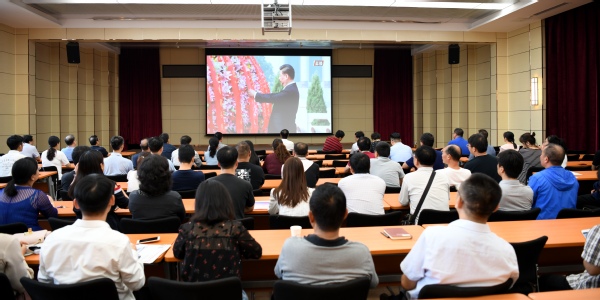 按照校党委统一部署,校党委理论学习中心组以集中学习扩大会的形式组织观看,全体党总支书记、支部书记、教师学生党员代表一起观看了仪式。观看完仪式后,大家纷纷表示,要继承和发扬革命先烈的优良传统,牢记苦难辉煌历史,传承爱国奋斗精神,聚焦立德树人根本任务,不忘初心、牢记使命,勇做新时代的奋斗者,以优异的成绩为新中国成立70周年献礼。