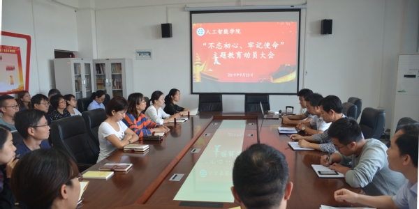 9月23日,人工智能学院在1号楼413会议室召开“不忘初心、牢记使命”主题教育动员大会,学校主题教育第三指导组组长邓清卫等到会指导,人工智能学院全体党员参加会议。