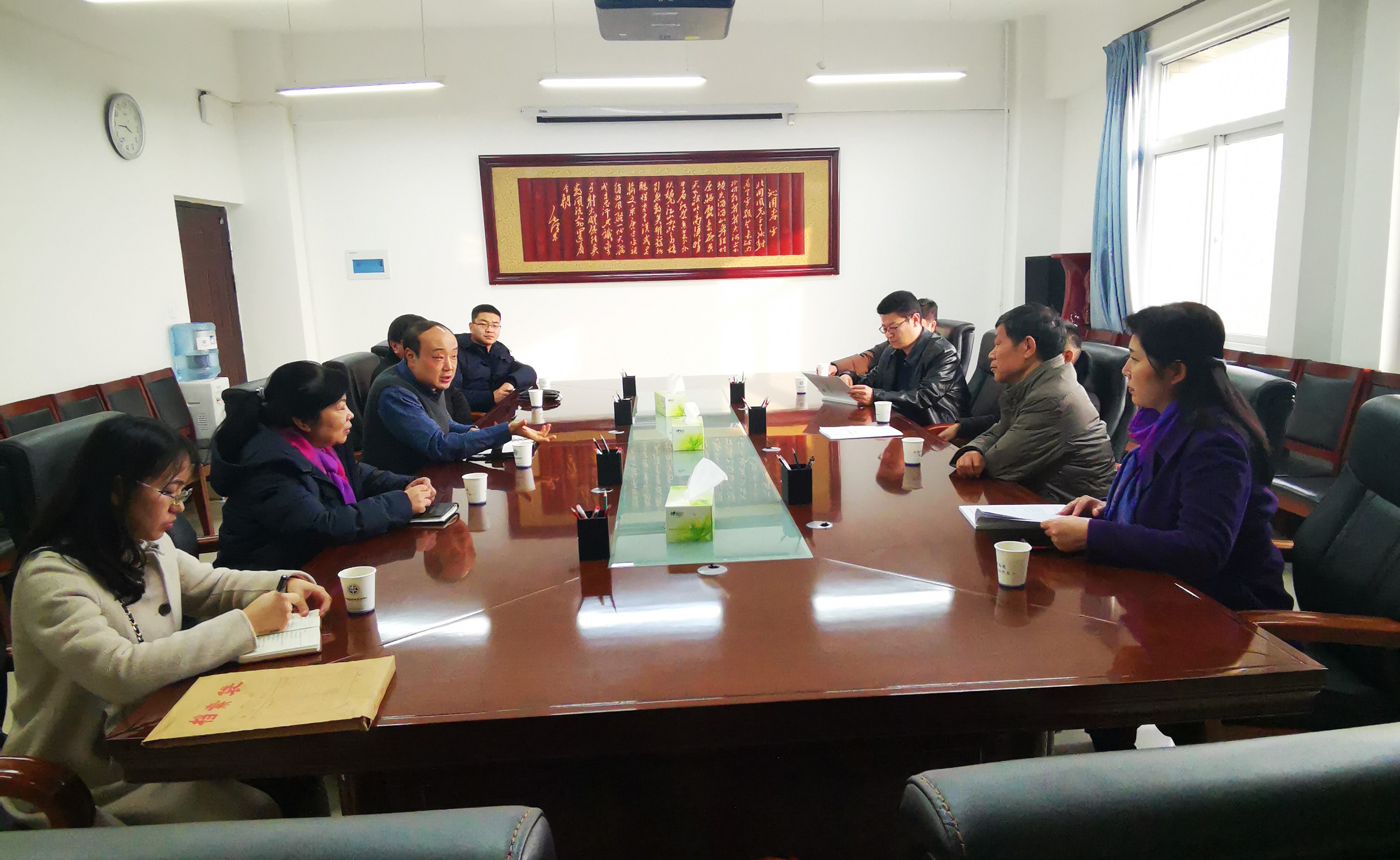 12月16日,郑州市技师学院院办主任、基建处长和财务处处长李建敏等一行8人来我校进行学习交流内部控制建设工作。