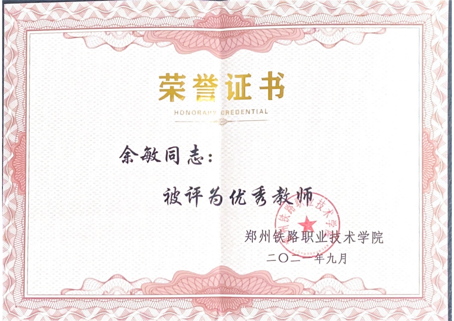 2021年学校优秀教师---余敏
