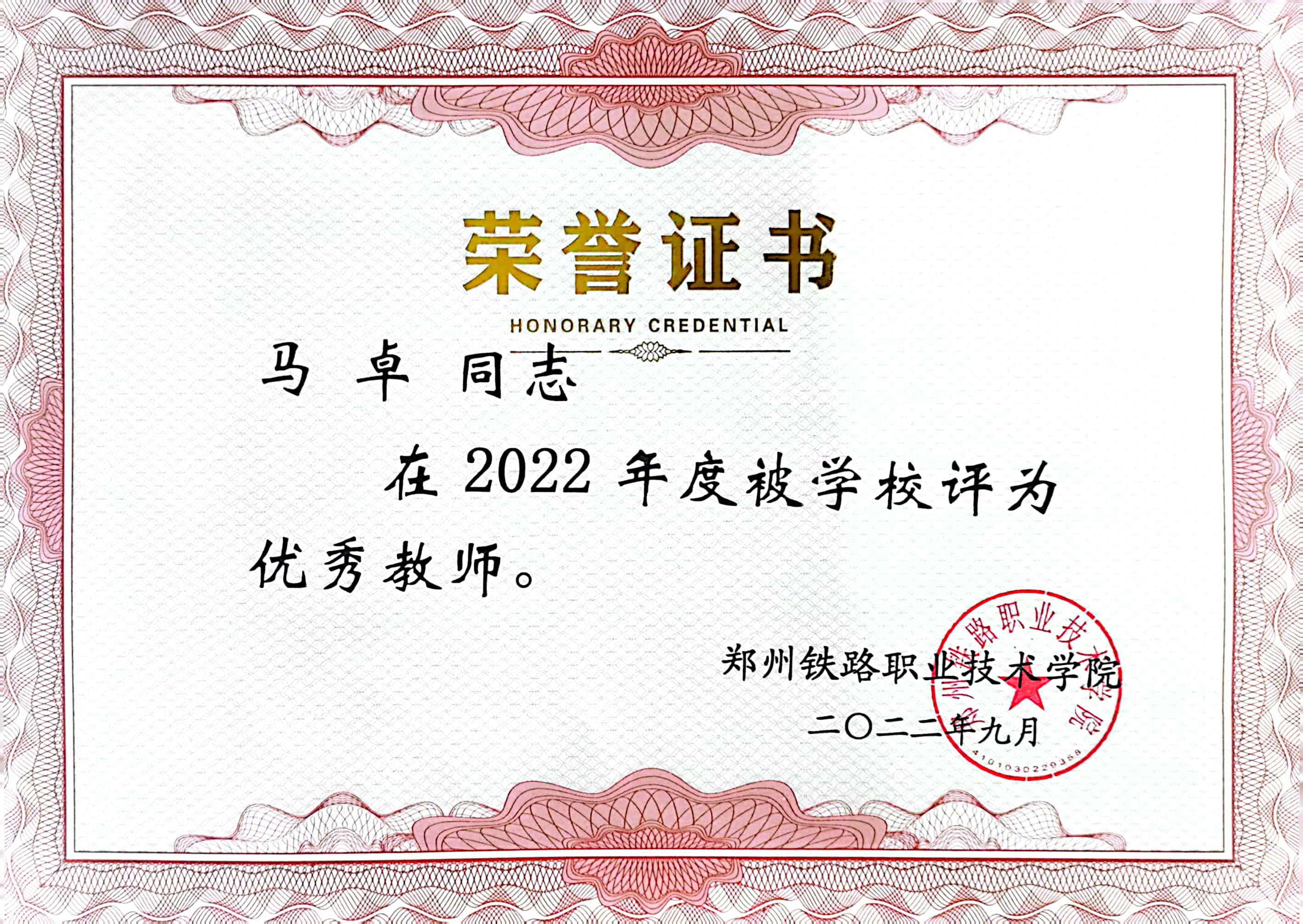2022年度学校优秀教师----马卓
