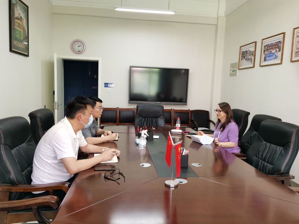 67日下午,在7205会议室,丝路书院(国际教育学院)召开外籍教师代表教学工作座谈会。外籍教师阿廖娜及丝路书院(国际教育学院)党总支书记王伟、副院长乔聪参加了座谈。