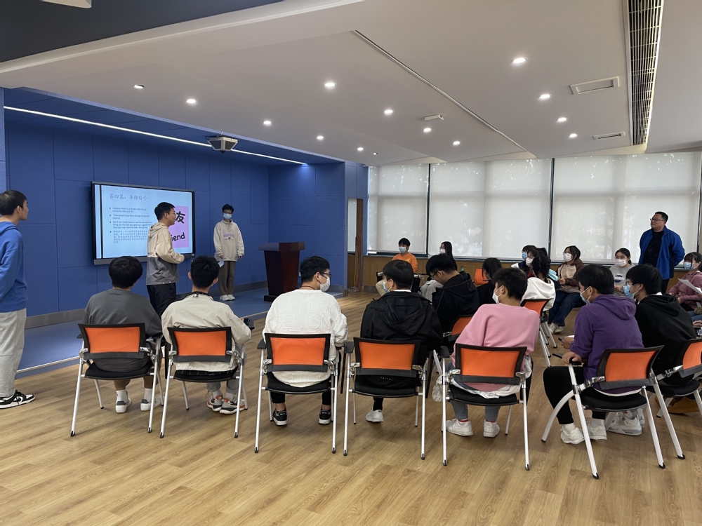 本期活动的主题为英文短文分享。来自高铁乘务22A3班的李梓翔同学英语功底深厚,他分别从“鉴别友情”“充满信心”“人生道理”和“等待给予”等方面向大家分享了四篇英文励志短文,并提炼主题词、强调重点句,让大家对词汇和文章都有了更深的了解。随后,英语沙龙现场开始了形式新颖多样的小环节,包括现场主题讨论、小组汇报、通过小游戏选人进行朗读练习等。师生在口语交流中一起享受着英语带来的乐趣,也将此次英语沙龙推向了高潮!