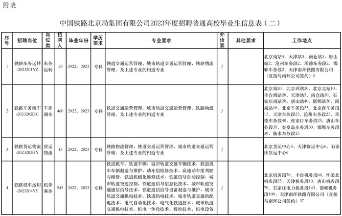 中国铁路北京局集团有限公司2023年度招聘普通高校毕业生信息表.pdf
