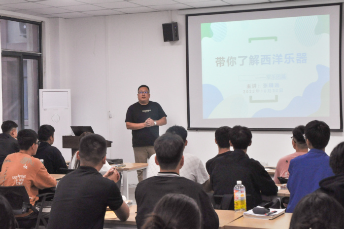 据了解,张晓远学生时代曾任军乐团大号手,对军乐团各声部的演奏、配合经验丰富,对西洋铜管乐器、木管乐器及打击乐器有较深了解。此次讲座,让更多的同学能够“了解西洋乐器,听懂更多精彩!”