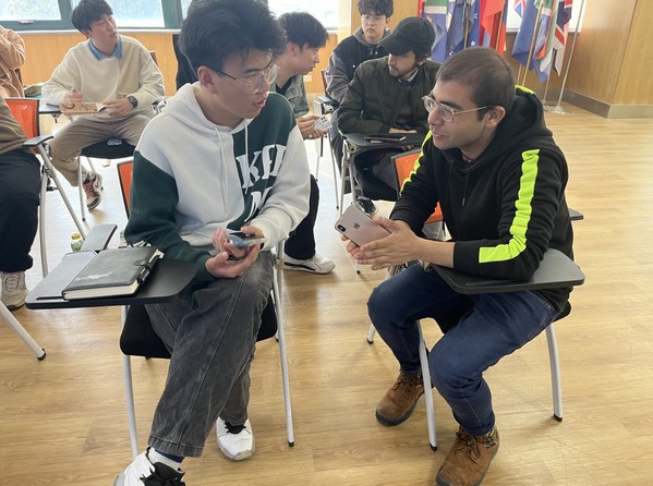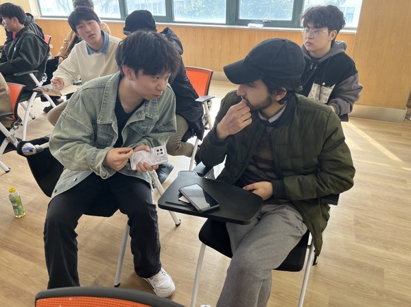 活动中,中外学生们分别用英语和汉语向大家进行自我介绍。随后进入互动环节,中外学生分组进行了“谁是卧底”的破冰游戏,通过破冰游戏,加深了彼此的认识和了解。最后开展分组讨论交流,中外学生互相分享彼此的文化、学习、生活体验,整场活动气氛活跃,中外学生互学互鉴,收获颇丰。