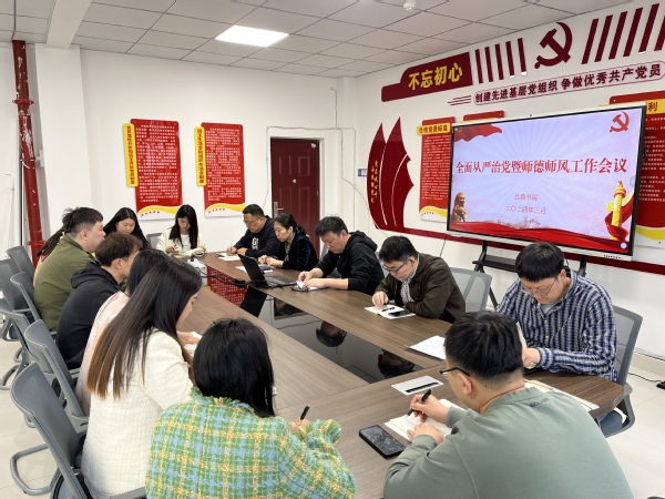 2024年3月28日下午,丝路书院(国际教育学院)班子成员、全体教师在会议室召开了以从严治党促进师德师风教育专题会议。