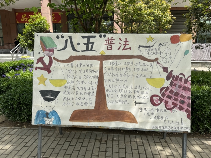 此次活动源于我国对法治教育的重视,以及学校对培养学生法治素养的责任与担当。丝路书院分团委学生干部召开宣传周启动仪式,通过在书院门口悬挂“学法知法守法,成长成人成才”条幅、布置“八五普法”展板和开展主题班会等活动形式来进行宣传教育。在主题班会中播放法治相关影片,进行法律知识的讲解普及,使学生们在实践中感受法治的作用,从而增强同学们法治意识。