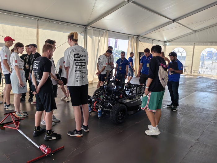 俄罗斯大学生方程式汽车大赛在俄罗斯圣彼得堡伊戈拉赛场举办。作为世界高水平大学生方程式赛事之一,吸引了来自俄罗斯、中国、土耳其、印度、哈萨克斯坦等国家高校的各支车队同场竞技。我校与乌拉尔国立交通大学联合车队在5天的比赛中,顺利通过车辆结构、安全性能和制动检测,完成设计、成本等商业答辩,取得直线加速、单圈计时和“8”字弯稳定性驾驶三个动态比赛项目第三名的优异成绩。