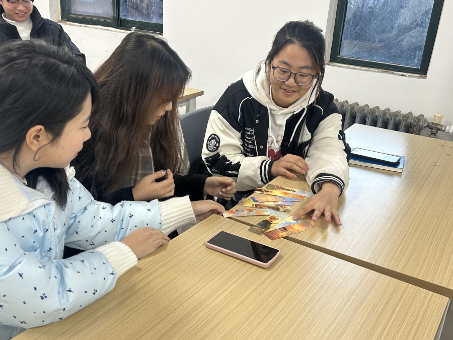 本次活动以好书分享交流、书签制作交换的形式开展,共有24位同学报名参加。活动中,同学们认真交流,积极参与其中。其中徐铭霞同学手持经典名著《平凡的世界》,以饱满情感讲述书中陕北城乡在上世纪变革浪潮里的故事。谈及孙少安负重前行办砖厂、孙少平背石闯生活,他通过自己的语言绘声绘色描绘出平凡人在苦难中不屈、逐梦的身姿,感慨“这书像时光隧道,引我们感受先辈奋斗,汲取奋进力量,在当下也能无畏前行”,台下听众沉浸其中,频频点头。交换书签环节,大家手持心爱书签,以契合书籍主题的书签互赠,这不仅是书签易主,更是思想碰撞、情谊传递,友谊和书香在这一递一接间升温升华。书签带着原主阅读感悟“漂流”,每枚都成为知识与情感使者,穿梭校园,让阅读热情随精美书签蔓延。