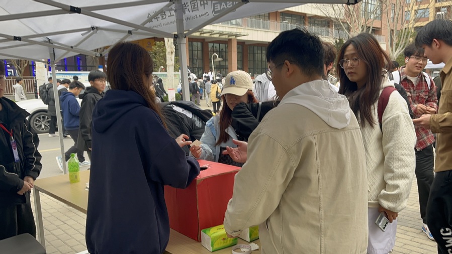 活动当天,书院北侧道路旁悬挂着消费维权系你我,权益保障靠大家主题横幅,宣传展板依次排开,图文并茂地展示了消费者权益保护法要点、常见消费陷阱及维权渠道。现场设置的权益知识答题抽奖区成为焦点,参与者需回答与消费维权相关的选择题,答对即可获得一次抽奖机会。题目结合生活实际的消费问题,让答题者仿佛身临其境,从而让维权意识扎根在同学们的心底。