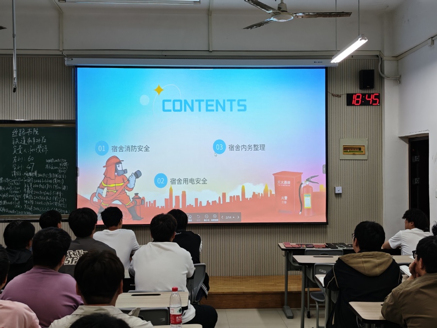 班会内容主要分为两大部分,宿舍消防安全以及宿舍内务整理。各班班长通过播放宿舍火灾、违规电器引发的安全事故案例视频,直观展现安全隐患的严重后果,并重点强调了我校宿舍规章制度。在内务整理方面,列出了内务整理的标准与要求、技巧与方法,望同学们共同营造良好的宿舍环境。
