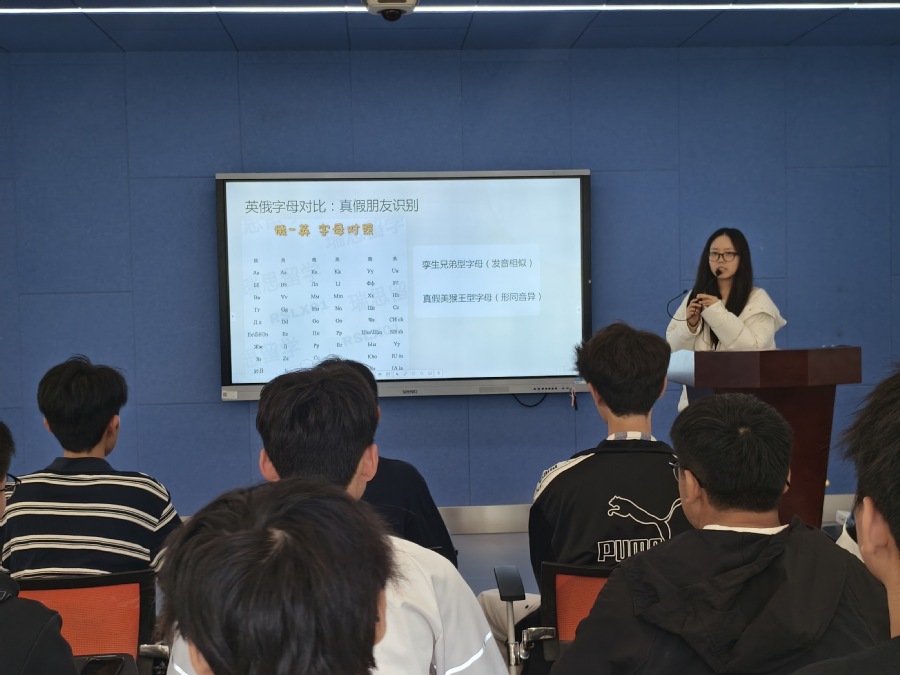 讲座过程中,朱李灵老师大胆突破传统语言教学范式,以极具创意且生动有趣的方式展开教学。她巧妙运用直观的音乐发音类比、形象的字形对比等别具一格的教学方法,把原本复杂的俄语知识化繁为简,为同学们开辟出一条便捷高效的学习通道。现场气氛十分活跃,同学们在轻松愉悦的互动环节中,真切地领略到了俄语的独特魅力,也深刻体会到了汉俄对比学习的奇妙与乐趣。