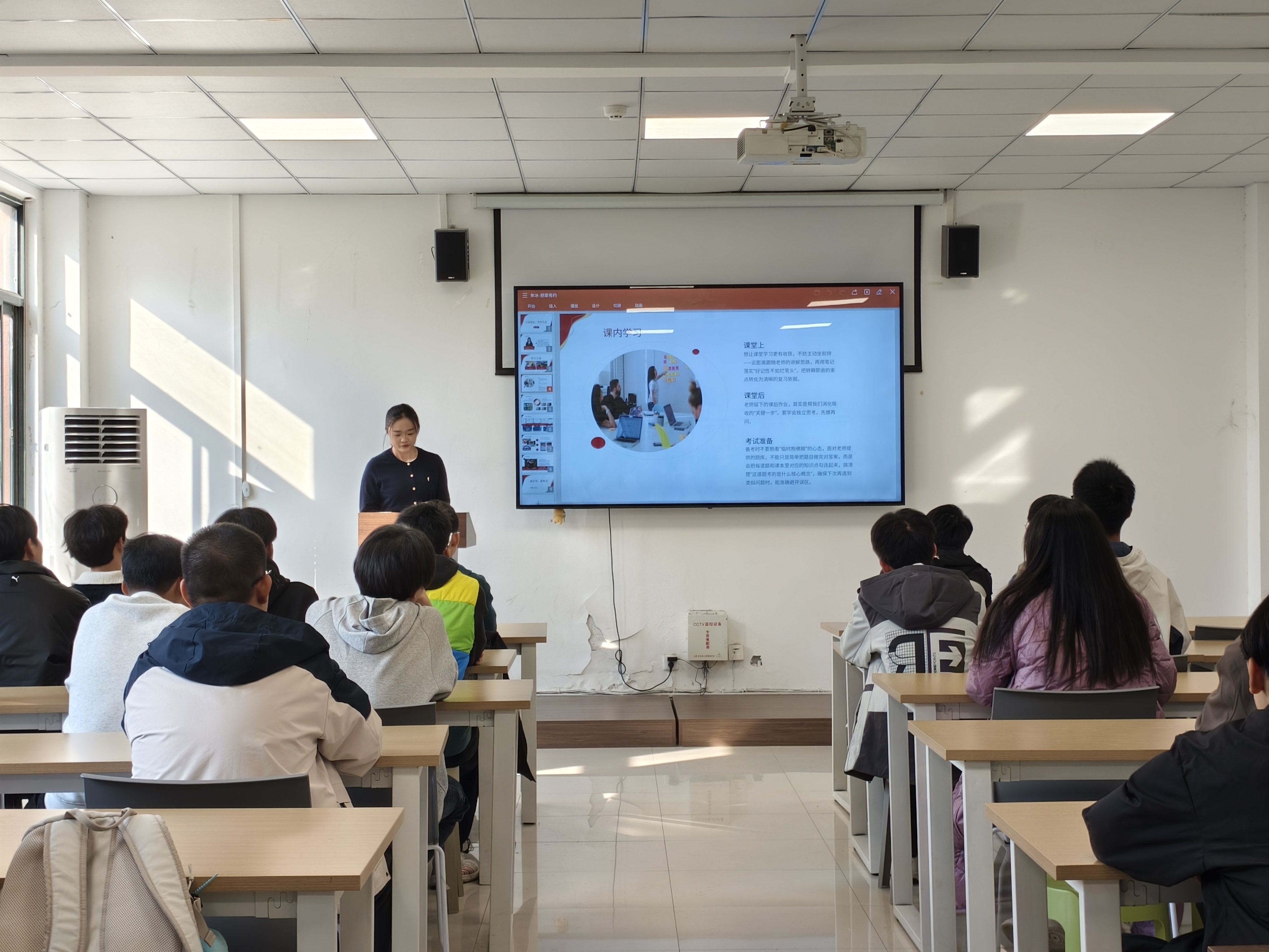 讲座中,朱冰结合自身学习、竞赛、学生工作及志愿服务等方面的工作经历,分享了时间管理技巧、赛事心态调整方法,并针对新生常见的适应问题提出了具体建议。现场同学认真聆听、积极记录,围绕“高效备考”“竞赛选择”等话题踊跃提问,与朱冰展开互动,现场气氛热烈融洽。不少同学表示收获颇丰,进一步明确了学习与发展方向。