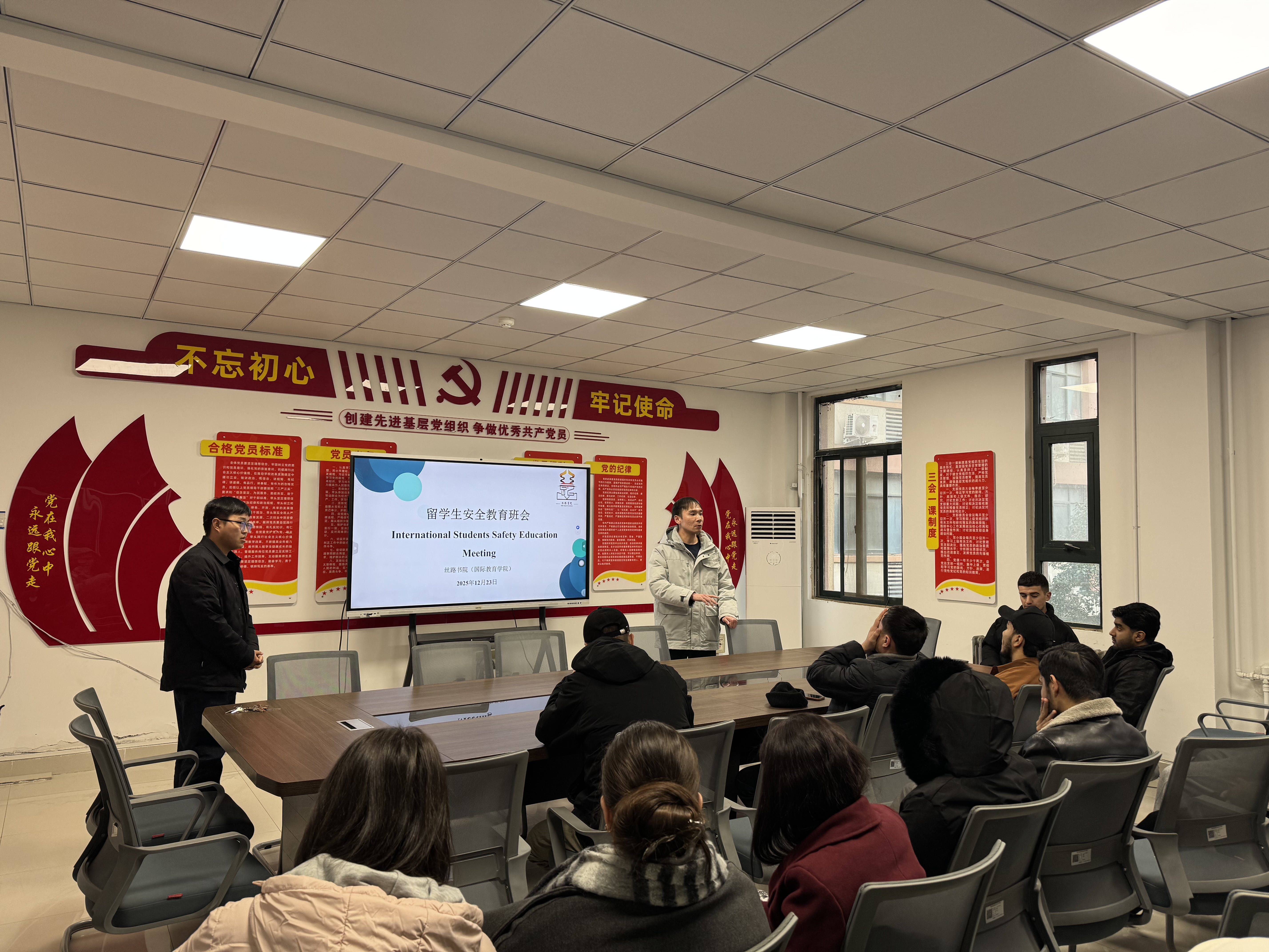 为加强留学生安全教育,提高留学生安全意识。12月23日下午,丝路书院召开留学生安全教育班会,全体留学生参加了班会。