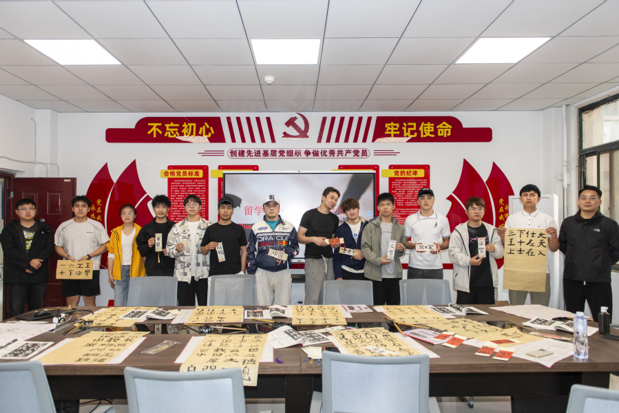 活动刚开始,中国学生用通俗易懂的双语讲解,向留学生们介绍了中国书法的悠久历史、文化内涵,让大家了解到书法不仅是汉字的书写艺术,更是中国人精神情感与哲学思想的表达。在体验环节中,中国学生手把手示范,耐心指导留学生握笔、运笔,纠正书写姿势与力度。初次接触毛笔的留学生兴趣浓厚,认真临摹,在指导下逐渐找到书写感觉。中外学生边写边交流,在墨香中增进友谊。活动尾声,留学生们纷纷展示自己的书法作品,每一幅作品都承载着他们对中国书法的喜爱。