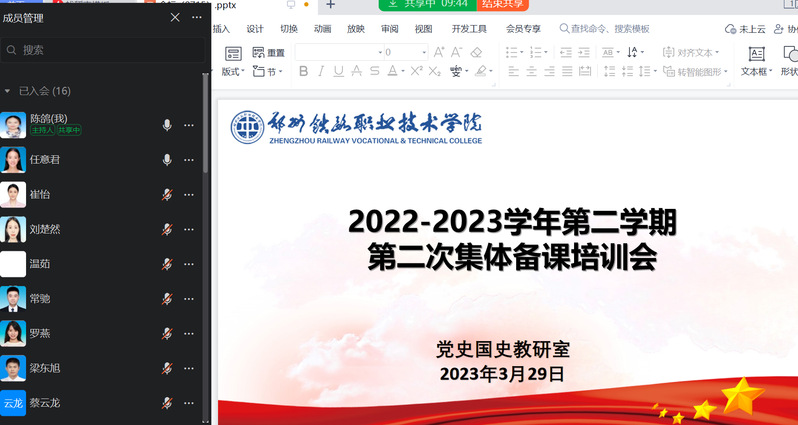为进一步加强课程建设,提高思政课教师教学水平,3月29日晚,马克思主义学院党史国史教研室通过钉钉会议组织开展了集体备课会。会议由教研室老师陈鸽主持,教研室全体教师参加了此次备课。
