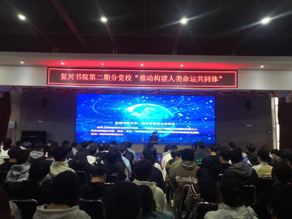为进一步学习宣传党的二十大精神,向青年学生传播党的理论知识,4月4日下午,复兴书院分党校在大学生活动中心举行党的二十大精神学习专题党课,邀请马克思主义学院张泽欣老师为500名分党校学员集中授课。