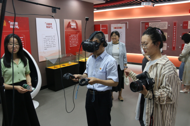 政治理论学习后,马院全体党员赴河南经贸职业学院思政教育体验教学基地开展主题党日活动,参观了党章学习教育中心、伟大建党精神教育实践基地和思政虚拟仿真体验教学中心。