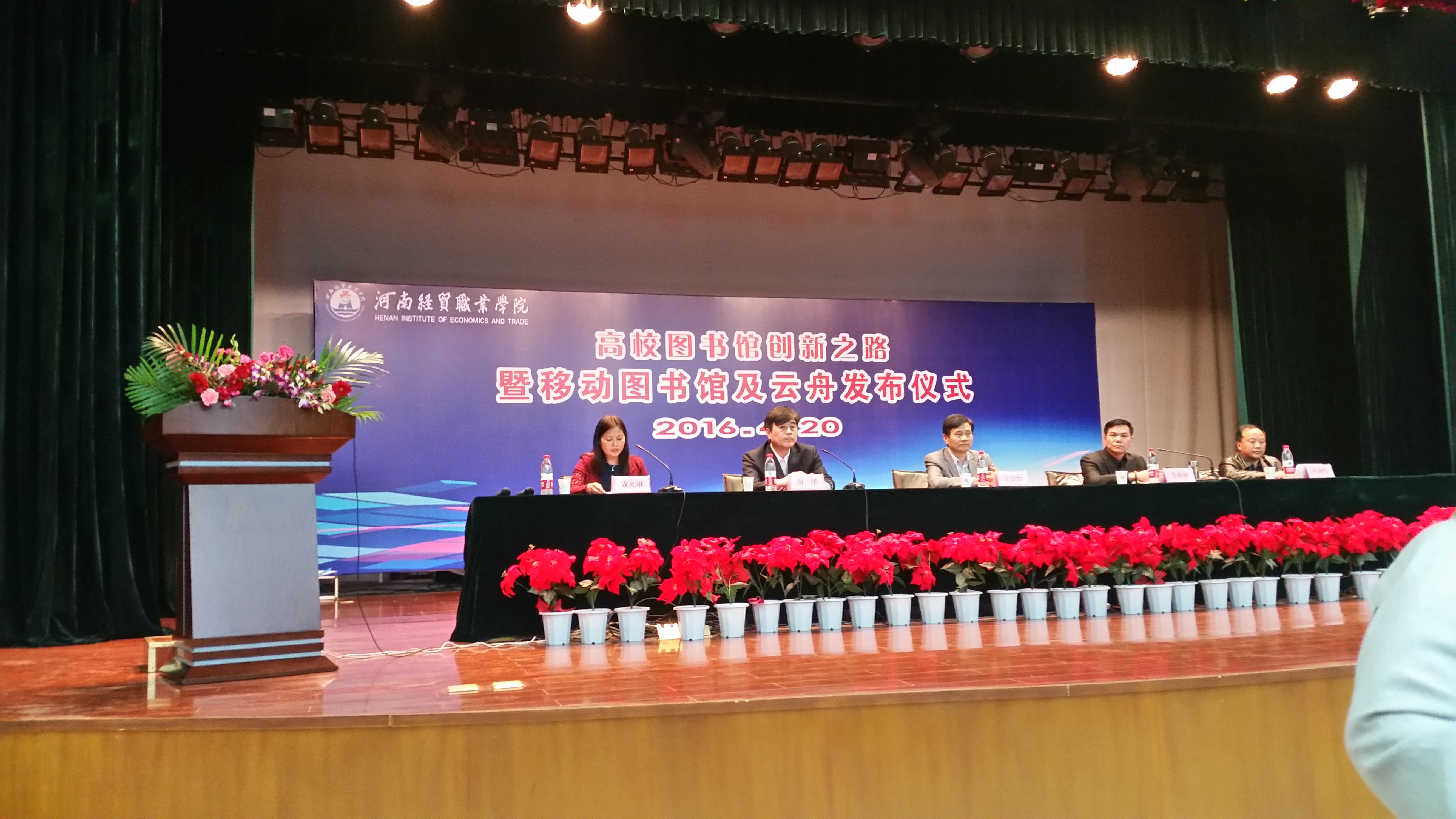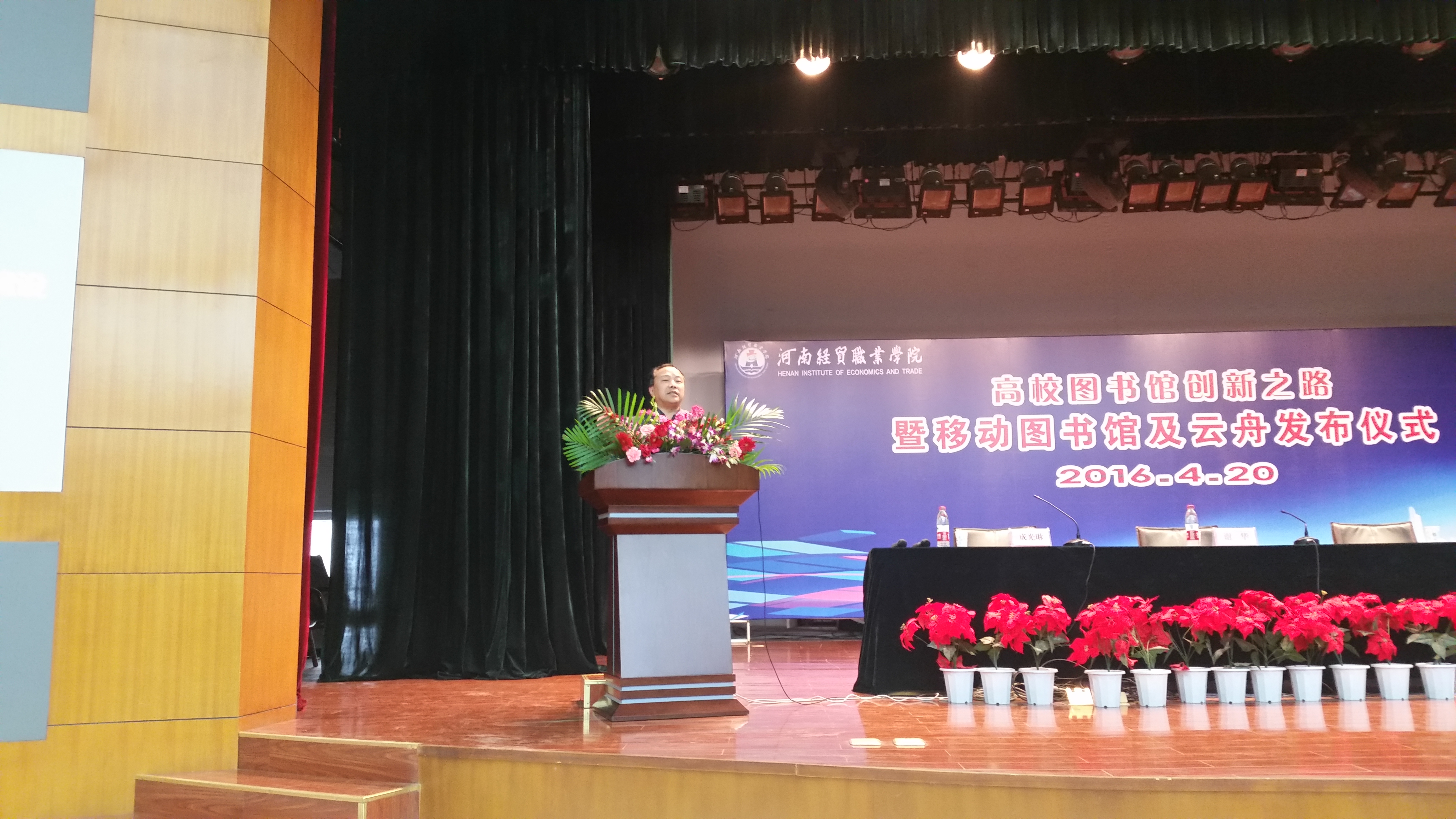 2016 年 4 月 20 日,我校参加了在河南经贸职业学院召开“高校图书馆创新之路主题报告会暨河南经贸职业学院移动图书馆发布仪式”围绕移动服务的应用和创新展开研讨,以更好的推动图书馆服务的广泛应用。