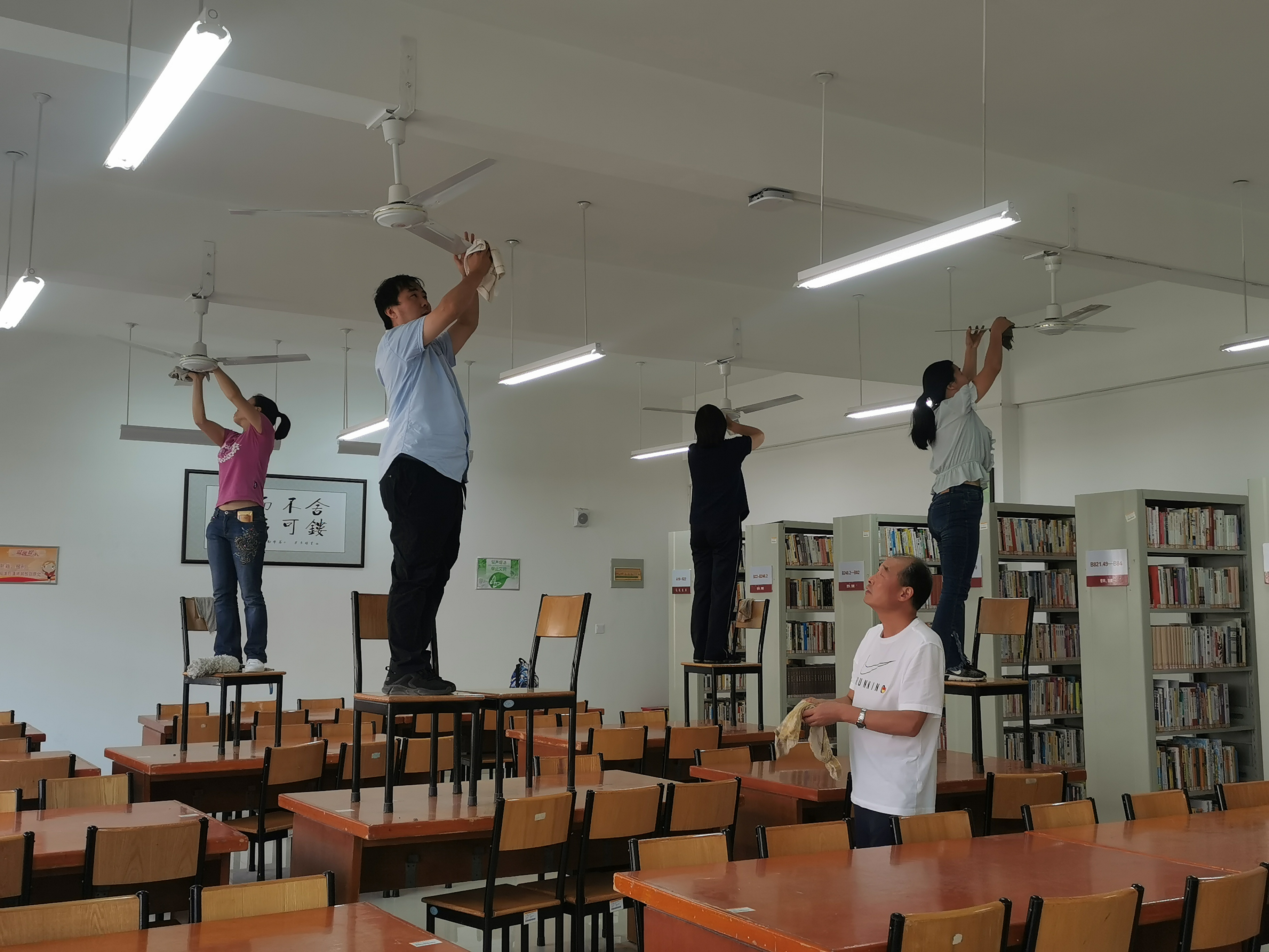在喜迎建国70周年之际,为认真做好省级文明校园创建工作,图书馆党总支组织开展“不忘初心、牢记使命”党员奉献日活动。