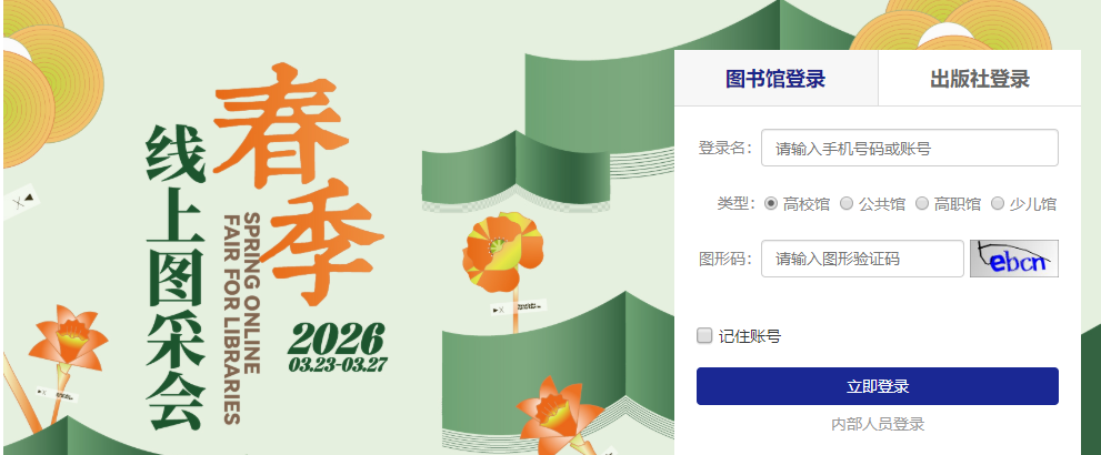 春启新篇,书香聚力。2026年春季线上图采会将于3月23日-3月27日采取线上订购模式举行。本届图采会由北京人天书店集团股份有限公司主办,邀请全国500余家出版单位,汇聚万千精品佳作,畅通采选对接渠道。mg娱乐电子游戏官网图书馆期待与广大师生共赴这场春日书香之约,欢迎各位读者踊跃荐购图书。