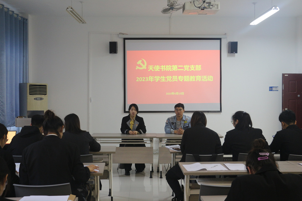 为进一步提高学生党员党性修养,坚定学生党员理想信念,2023年4月13日下午,天使书院第二党支部开展2020级预备党员专题教育活动,天使书院第二党支部宣传委员马鹏飞、组织委员何峰,以及全体预备党员出席活动。