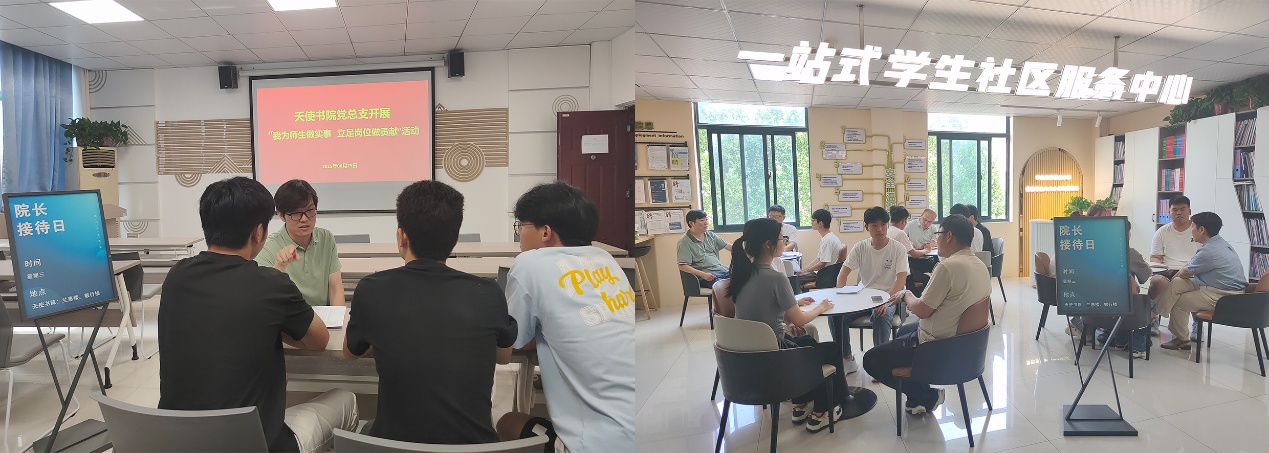为深入贯彻学校党委关于落实中央八项规定精神的工作部署,6月24日下午,天使书院党总支在书院三楼博雅讲堂和一站式学生社区服务中心同步开展“我为师生做实事,立足岗位作贡献”活动。党总支书记、院长王芳,副院长王小珂及全体党总支成员出席活动,书院主要学生干部参加。