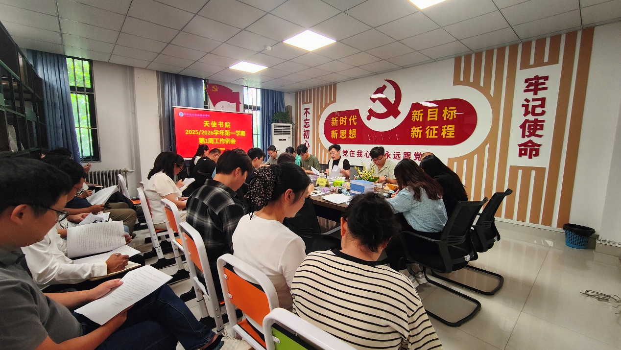 会上,办公室主任马鹏飞部署了新学期党建与值班工作,要求各支部持续跟进党员关系转接、本周完成2023级党员档案整理,并规范教师值班制度。学工办主任李文煜强调要做好学生返校迎新与军训值班安排,加强未就业学生帮扶与心理异常学生衔接,同时强化舆情监测与宿舍管理,维护书院安全稳定。
