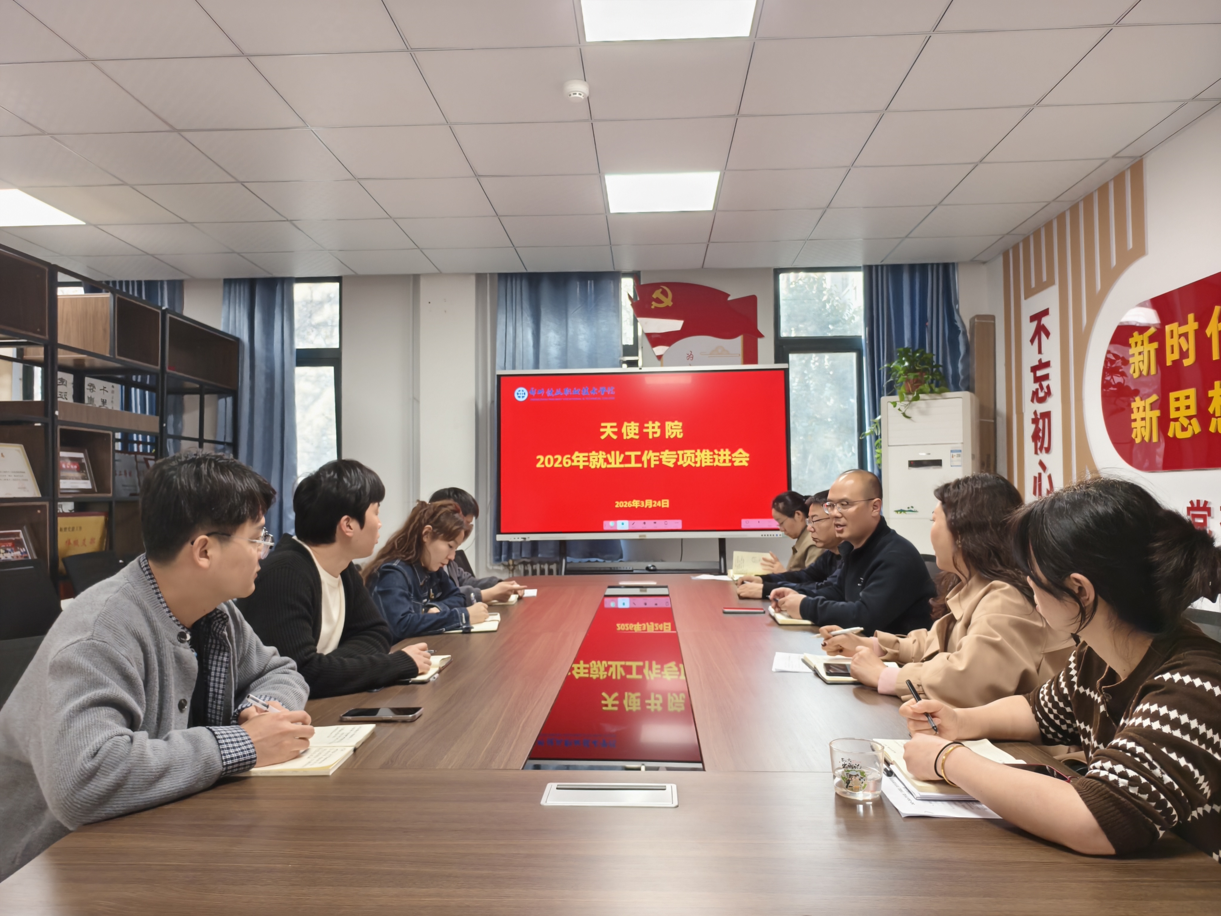 3月24日下午,天使书院在二楼会议室召开2026年就业工作专项推进会。书院全体毕业班辅导员参加会议,会议由党总支书记、院长魏冠义主持。