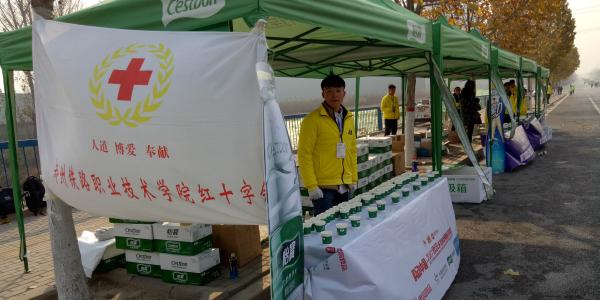 11月26日,首届炎黄国际马拉松比赛在郑州鸣枪开跑。我校红十字会100名青年志愿者参加了此次比赛的志愿活动。