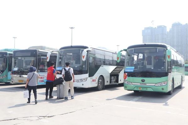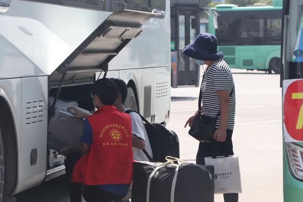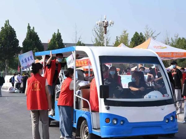 “我来帮你”“行李交给我”,志愿者们接过新生手中沉重的行李,引导新生乘坐迎新专车,不辞劳苦,热情洋溢,为新生提供贴心且周到的服务。有的新生受到感召,放下自己的行囊后就转身投入到迎接新同学的行列中。