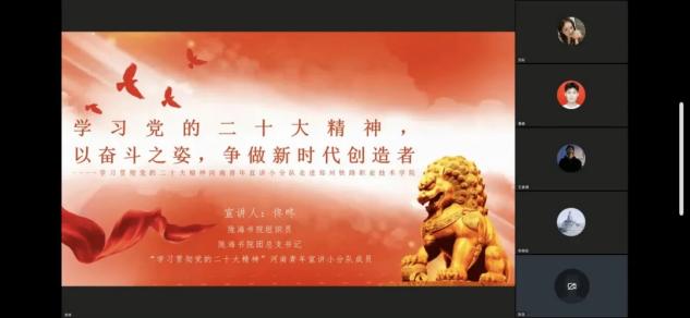 另一宣讲小分队成员高灿灿也以线上会议的形式开展了主题宣讲,天使书院学生会、社区管理委员、团支书等主要学生骨干参加了会议。