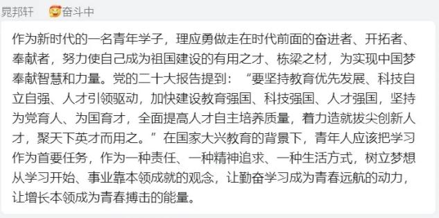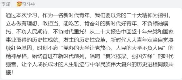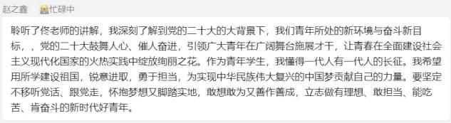 趁热打铁,11月18日,我校宣讲小分队成员佟咚以线上会议的形式走进书院学生会骨干队伍中进行了首场主题宣讲。宣讲小分队成员以《学习党的二十大精神,以奋斗之姿,争做新时代创造者》为宣讲主题,围绕党的二十大报告原文的关键词,通过对大会的主题、主要成果的解读,聚焦习近平总书记对青年人的殷切嘱托,对党的二十大精神进行宣讲和阐述。勉励学生要肯努力,要肯奋斗,要肯吃苦,要扎实学本领,要有坚定理想信仰,把自己青春之小我融入祖国之大我、人民之大我之中,在实现第二个百年奋斗目标、建设社会主义现代化强国的新征程上开拓进取,不懈追求,以奋斗之姿,行稳致远,争做经济高质量发展的推动者、争做社会主义民主政治建设的参与者、争做社会文明进步的实践者、争做新时代最美的奋斗者、争做续写国辉煌时代篇章的创造者。同学们针对此次宣讲抒发了自己的心得体会。