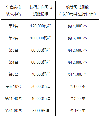 优秀组织高校牌匾。全省排名前10的高校将会获得“优秀组织高校”称号,并颁发“优秀组织高校”牌匾,相关物料将在活动结束后邮寄至高校负责人处。