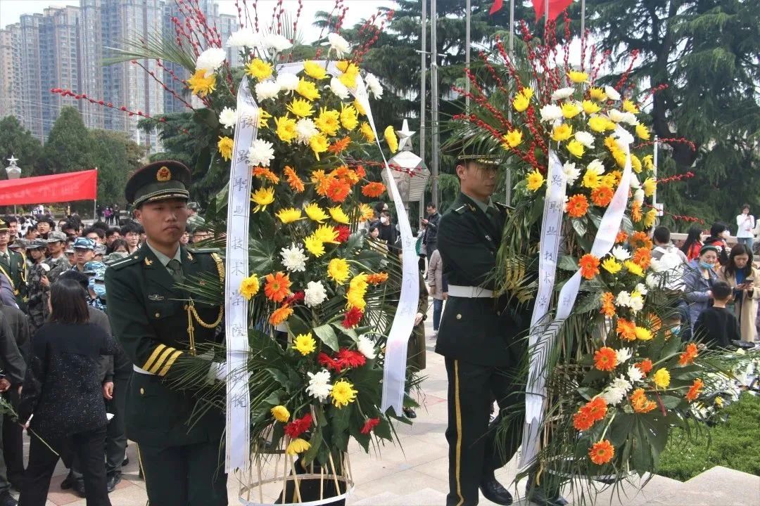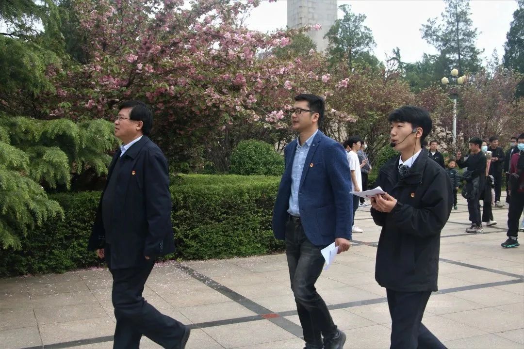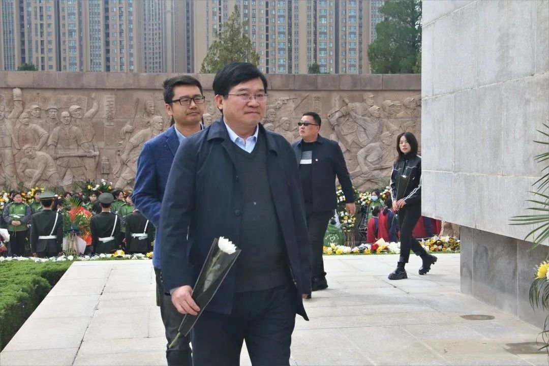 上午10时许,在庄严肃穆的纪念碑前,我校仪仗队的同学们,迈着沉重的步伐,将花篮抬至纪念碑前;校党委副书记、工会主席徐宏平缓步行至革命先烈纪念碑前,仔细整理花篮挽联,面向革命先烈纪念碑鞠躬致敬。