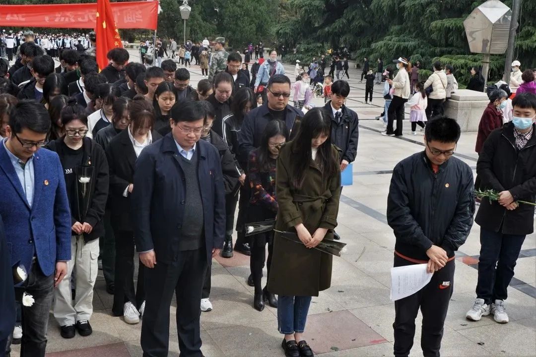 全体师生默哀三分钟,缅怀革命烈士,并进行鞠躬祭拜,依次敬献鲜花,瞻仰革命烈士纪念碑。烈士身虽远去,但精神长存。