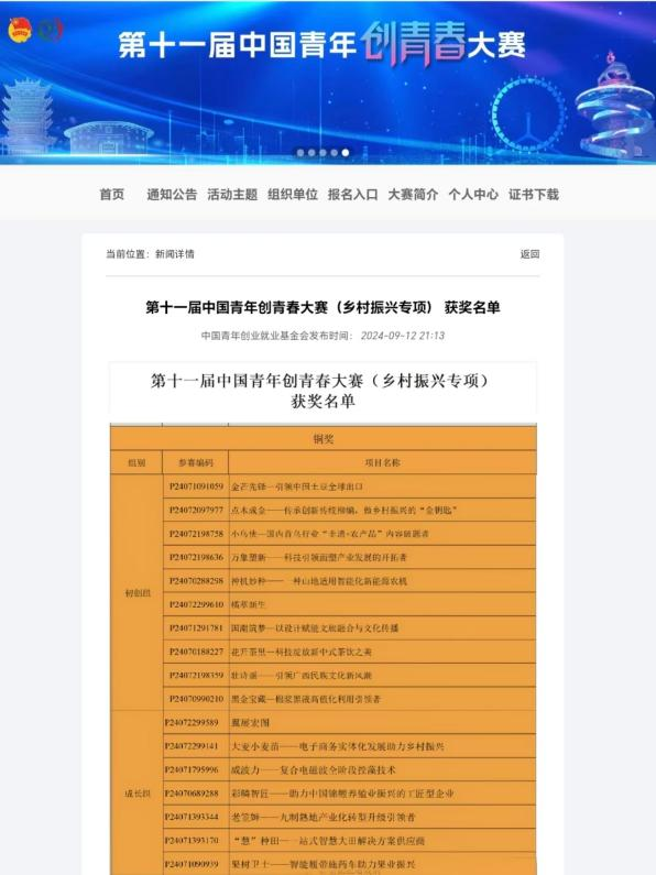 近日,由共青团中央、商务部、国家卫生健康委、国家税务总局、福建省人民政府等单位共同主办的“第十一届中国青年创青春大赛”在福建漳州漳州职业技术学院举办。“点木成金——传承创新传统柳编,做振兴乡村的领路人”团队在乡村振兴专项中荣获初创组国家铜奖。这是我校首次获得该荣誉。