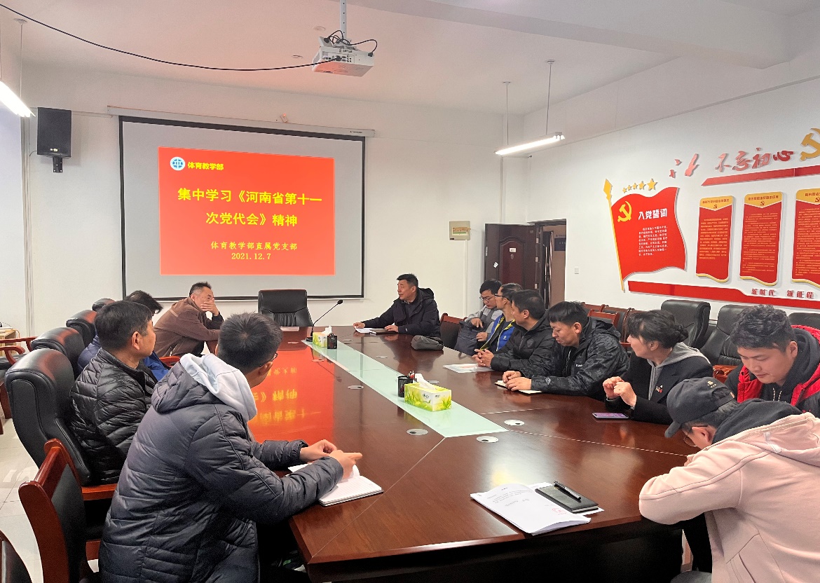 根据《中共河南省委宣传部关于学好用好省第十一次党代会精神集中宣讲视频的通知》,mg娱乐电子游戏官网体育教学部于12月7日13:00在7412会议室,集中收看宣讲视频,并深入开展讨论。